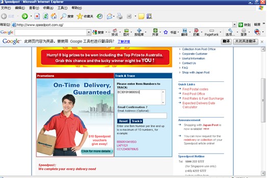 登入http://www.speedpost.com.sg/,輸入運單號碼
