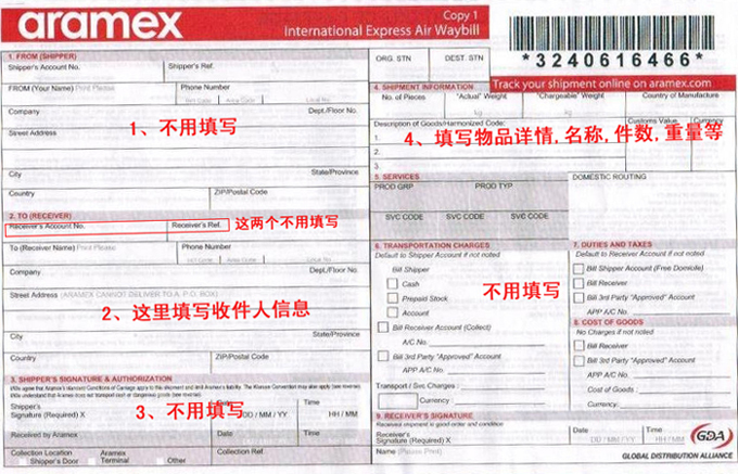 1、運單填寫包含:收件人信息、貨品信息、申報價值、件數及重量等詳細資料,單票貨物申報不得超過:USD50000。寄件人信息由我司統一打印,所有資料必須以英語填寫;